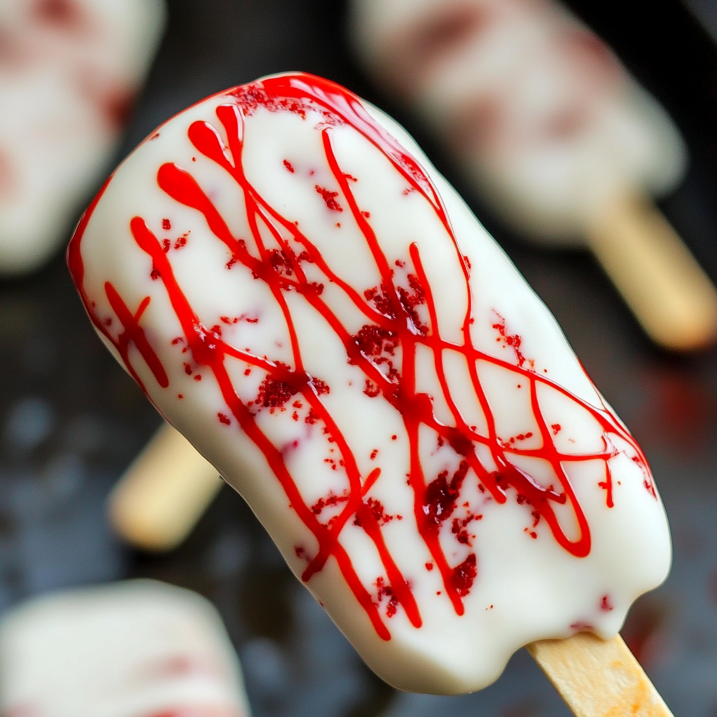 Blood Splatter Cakesicles are the perfect spooky treat for any Halloween gathering or themed party. With their eye-catching red velvet interior and dramatic white chocolate coating, these cakesicles bring a fun twist to dessert time. Their unique blood splatter decoration adds an element of surprise, making them a hit among guests. Easy to make and delightful to eat, Blood Splatter Cakesicles are sure to impress at your next event!